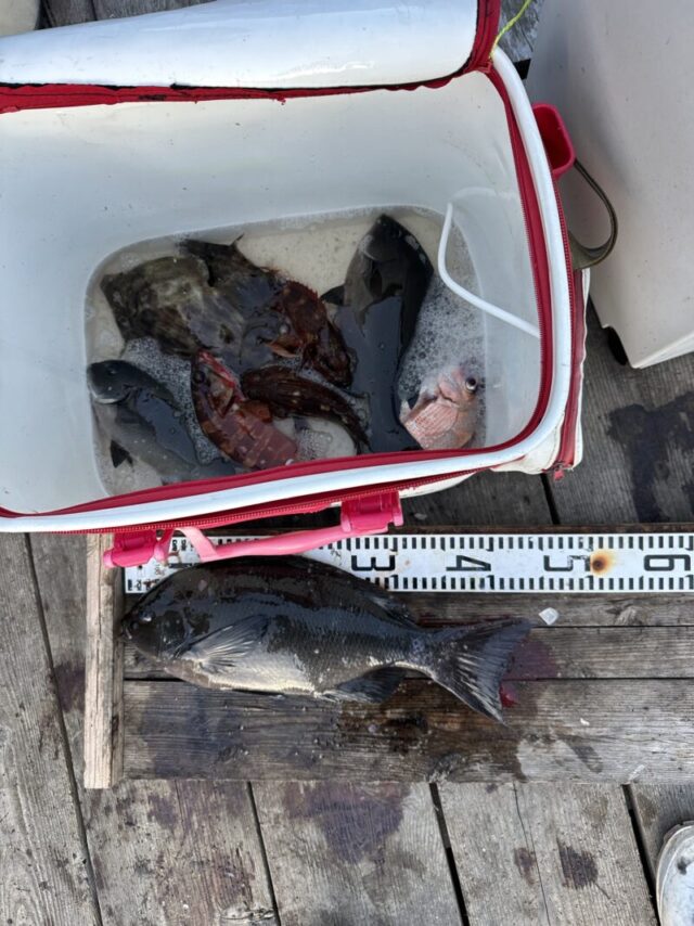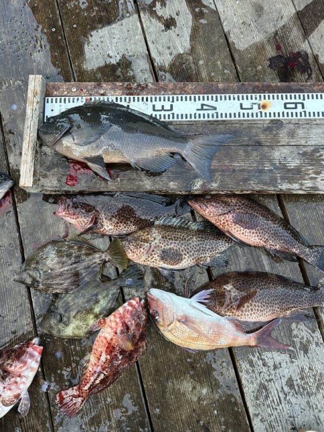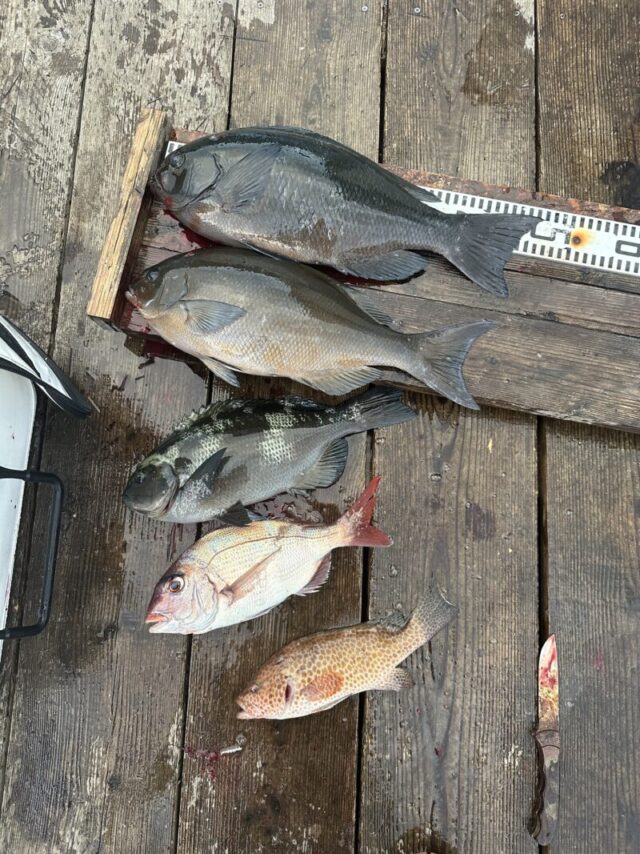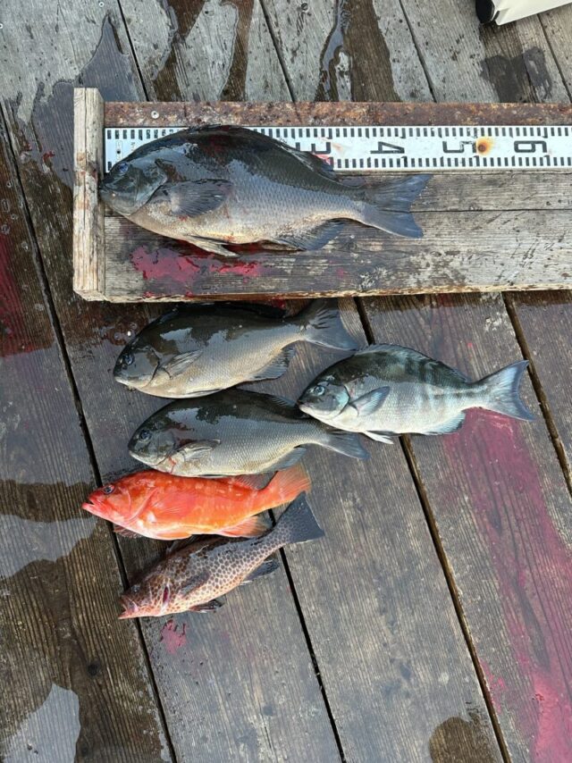 大浜様 尾長グレ 44センチ 相原様 尾長グレ 40センチ 寺田様 尾長グレ 41センチ 服部様 イシダイ 55センチ -